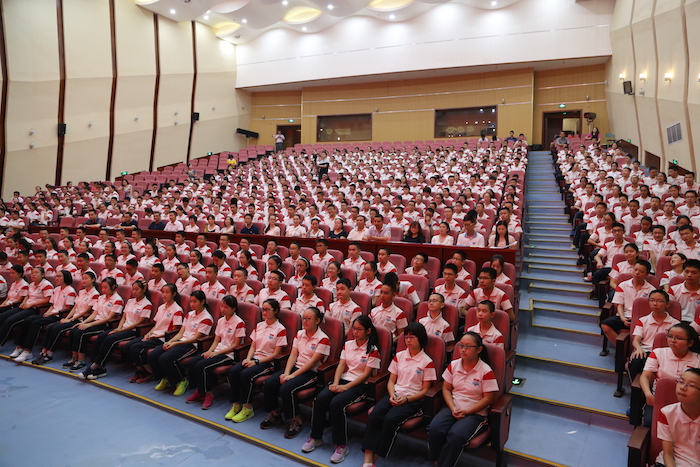 9月1日,在上午召开隆重的开学典礼后,下午,成都七中初中学校2016届初三动员会在音乐厅举行。大会由2016年级组长杜明元老师主持。