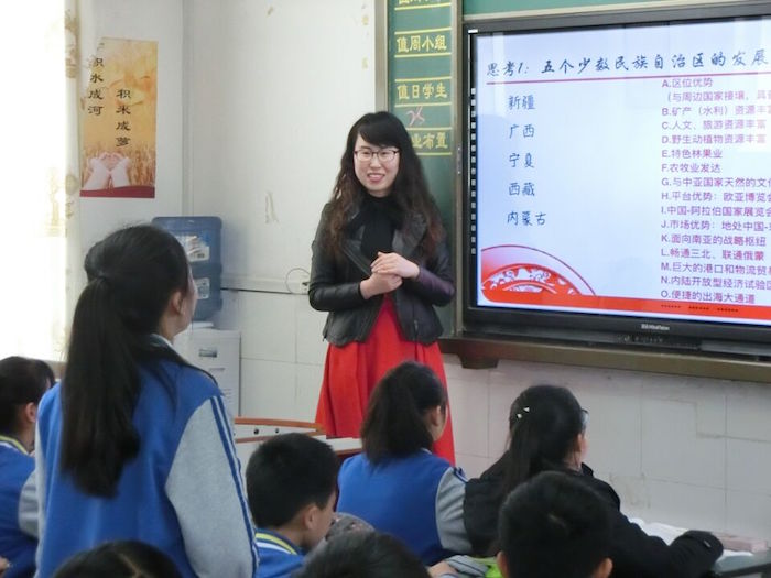 本次授课题目是《团结互助,共同发展》,关注少数民族和民族地区的进步与发展。看似枯燥的课题,看似难度的挑战,却蕴涵无穷的深意。如何在每个孩子的心里种下民族团结国家富强的种子,成为姜肖老师备课的关键。课堂的真正主人是每一个听课的孩子,调动孩子的积极性才可事半而功倍,于是通过安排孩子们做少数民族地区的代言人的方式,帮助他们理解新时代背景下少数民族地区的发展优势及策略。在潜移默化中,孩子们感悟着祖国边疆山水的壮美,在循循善诱里,孩子们激扬起爱我华夏民族的真情!