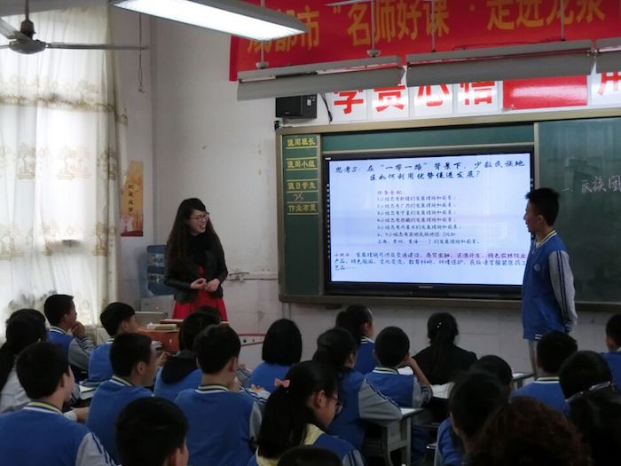 4月6日,我校政治教师姜肖受邀参加成都市“名师好课——走进龙泉洛带”送教活动,在洛带中学与八年级1班的学生开展了一次亲密的教学互动。