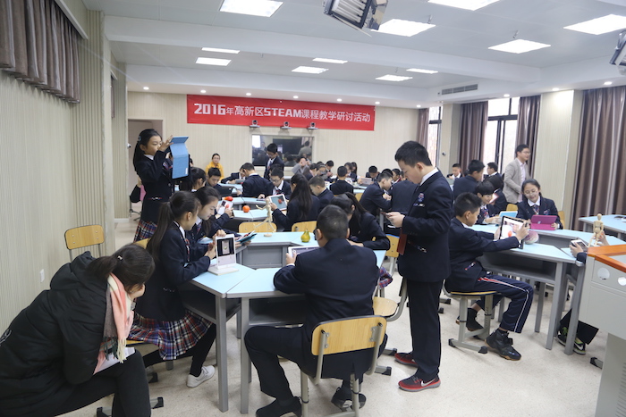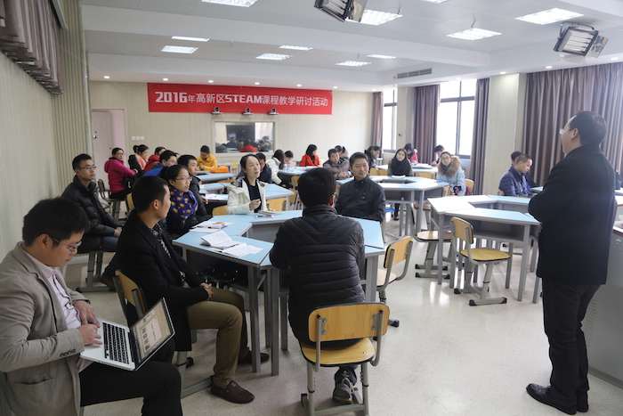 2016年12月5日上午,高新区STEAM课程主题研讨活动在我校成功举行,我校信息组郑刚、郑长宏、刘丹、郭建和夏小刚老师给大家带来了五节精彩的展示课。双流区信息技术教研员王鹏老师,成都七中信息中心主任赵敏老师,银都小学信息中心陈雪松老师、冰洁老师和高新区部分信息技术、科学教师参加了本次研讨活动。