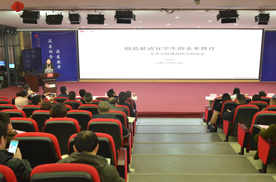 1月4日下午,成都市教育局组织召开的2016 年“未来学校”试点工作总结暨培训会在成都七中育才学校举行。成都市教科院、市技装中心相关负责同志,国家教育发展研究中心成都教育改革研究基地各工作部相关专家,13 所成都市“未来学校”试点学校校长以及新增“未来学校”试点区域代表及新增“未来学校”试点学校校长等百余名代表参加了本次会议。