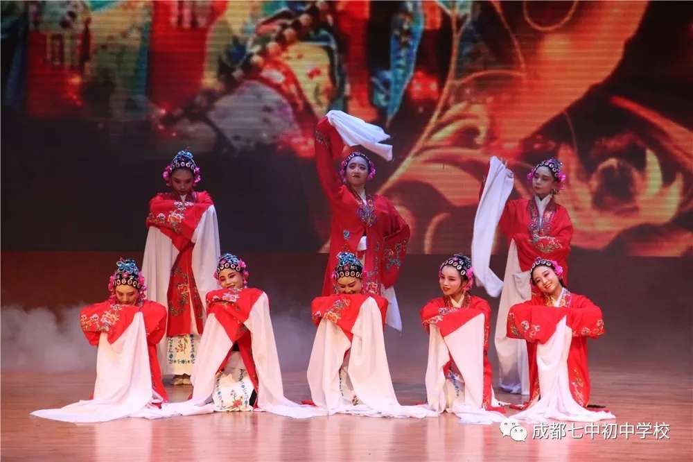 江南是杨柳依依、莲叶田田,江南最让人动情的是那轻柔的水,和水上翩翩起舞的水乡姑娘们。成都七中初中学校的老师们带来一段唯美舞蹈《青衣水袖》。