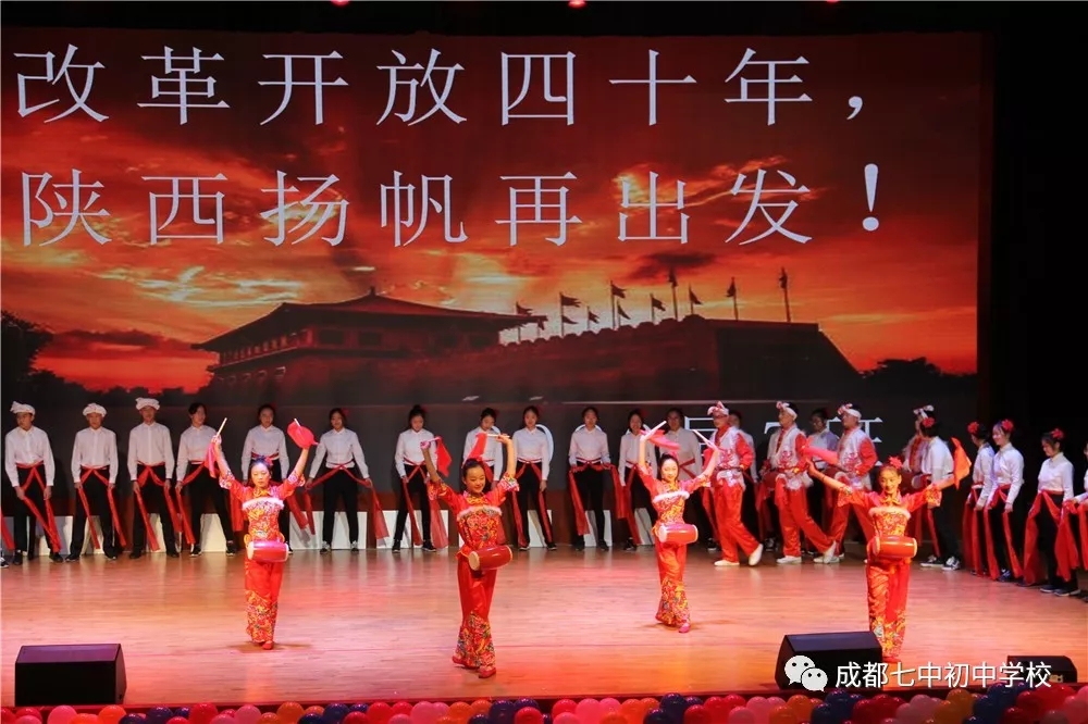 2018年12月29日下午2:00,成都七中初中学校全体学子在音乐厅以巡游方式演绎各省的40年的巨大变化和成果来致敬改革开放这一伟大的历史征程。