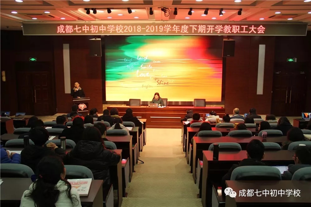 “寒霜梅中尽,春风柳上归。“成都七中初中学校走过了十年征程,收获了成功的喜悦和丰硕的成果,呈现了更加完整和生动的七初印象。2019年2月19日上午8:30,成都七中初中学校2018-2019学年度下期开学全体教职工大会在学术一厅召开。