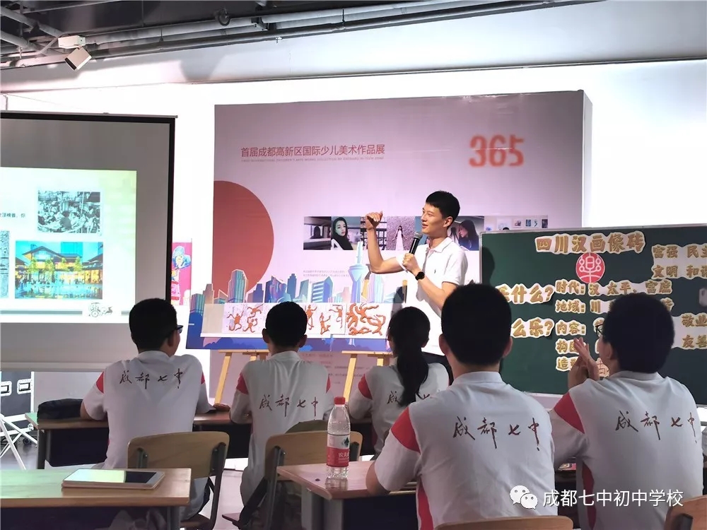 美术教师万里航老师在开幕式上展示公益课《四川汉画像砖》获得好评。万老师带领小朋友们穿越到汉代,通过美术遗存,感受四川人民千百年来乐观、勤劳的精神特质。