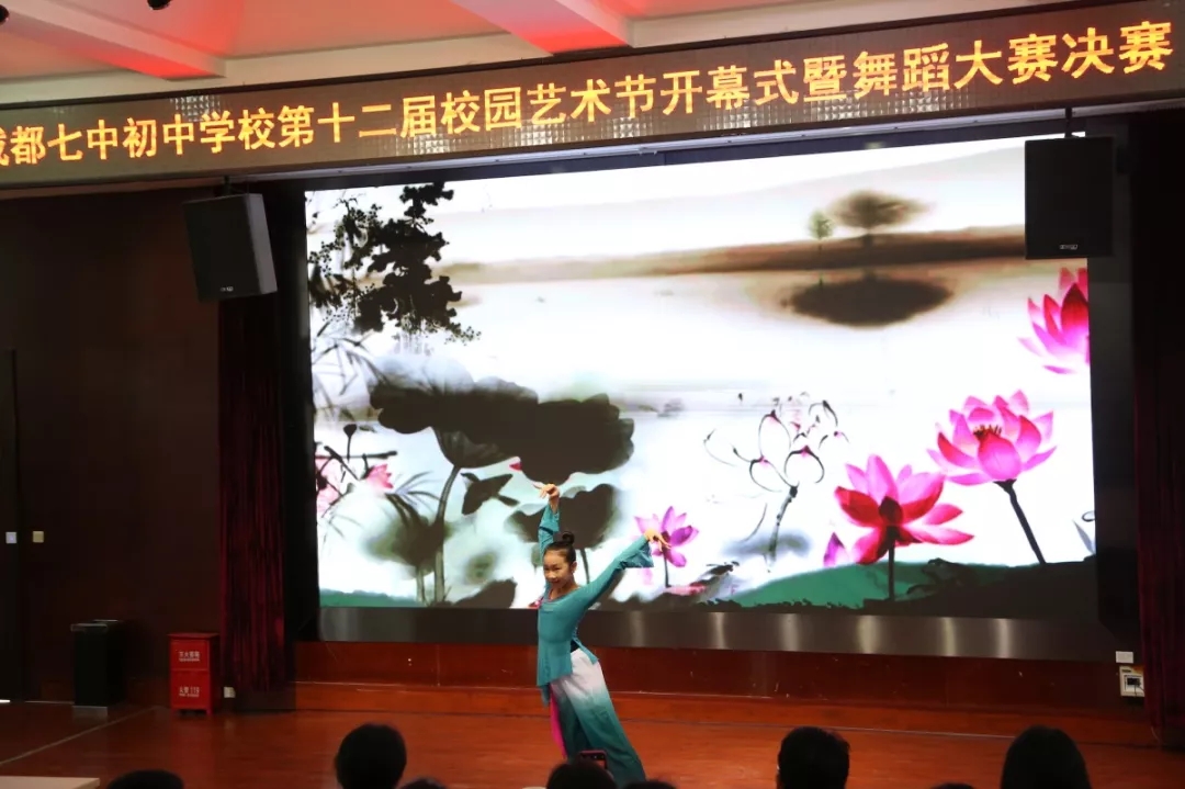 在台下观众的欢呼声中,成都七中初中学校第12届艺术节校园歌手决赛于11月15日在学术二厅拉开帷幕。担任此次舞蹈比赛评委的是四川省歌舞团吴蝶老师、七初马依婷老师和李倩云老师。