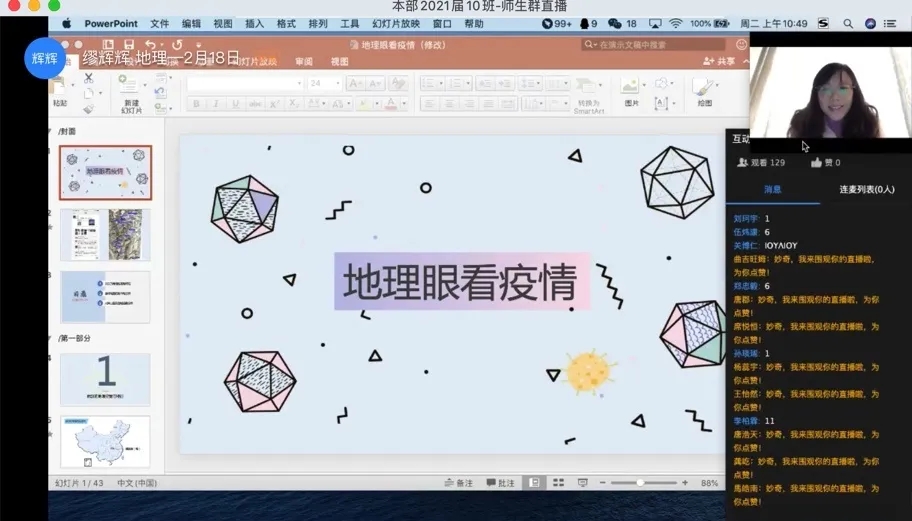 生命健康教育是生物学科教育的教育核心之一,通过在线直播教学结合疫情的原因、防控分析,对于学生的生命健康素养有实践性的提升,对于生物学科知识的学习有了更加深层次的理解。