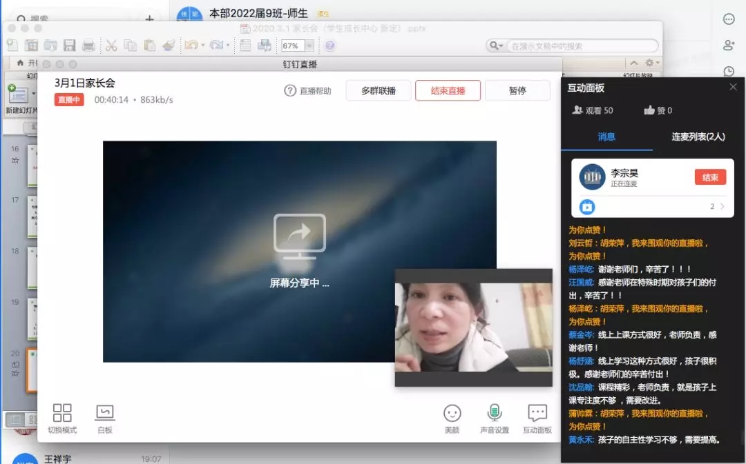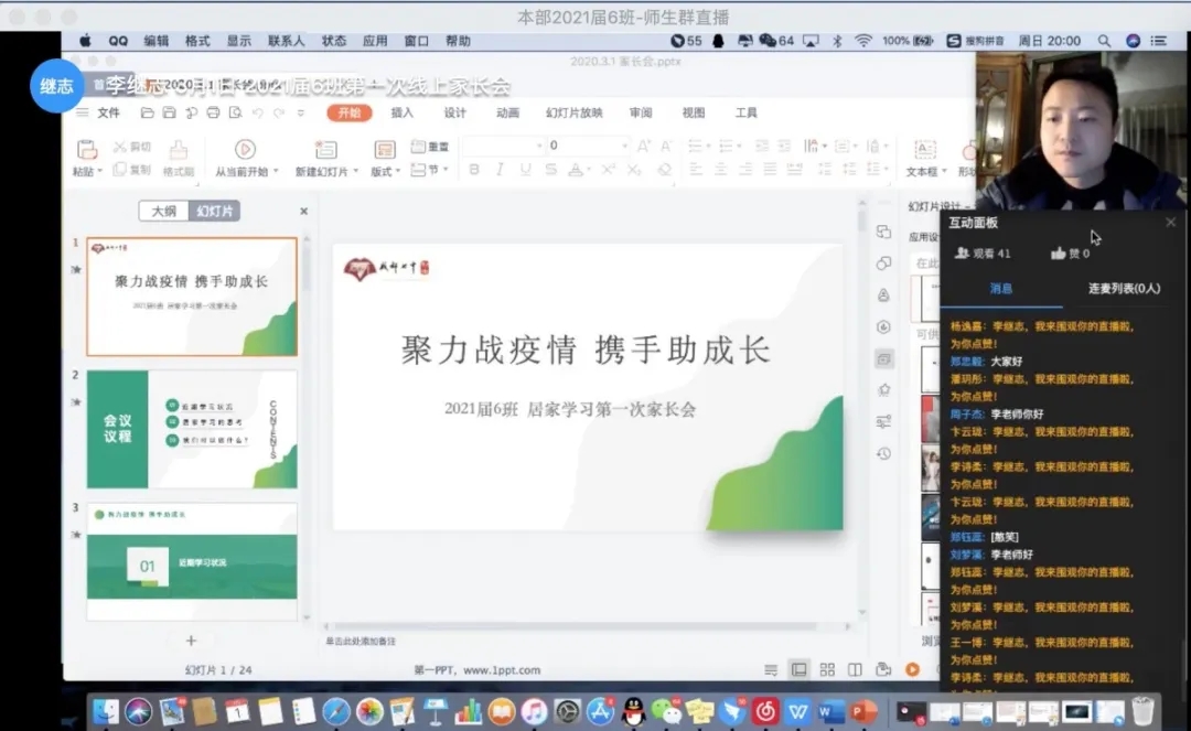 家长会首先交流了学生近期的居家学习情况。通过网络数据、班级日志 、学生互动、教师家长反馈等途径,对学生居家学习的整体情况与家长进行了充分的沟通交流。