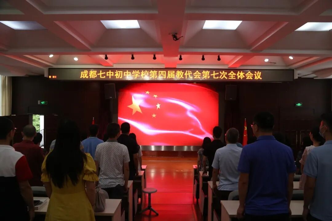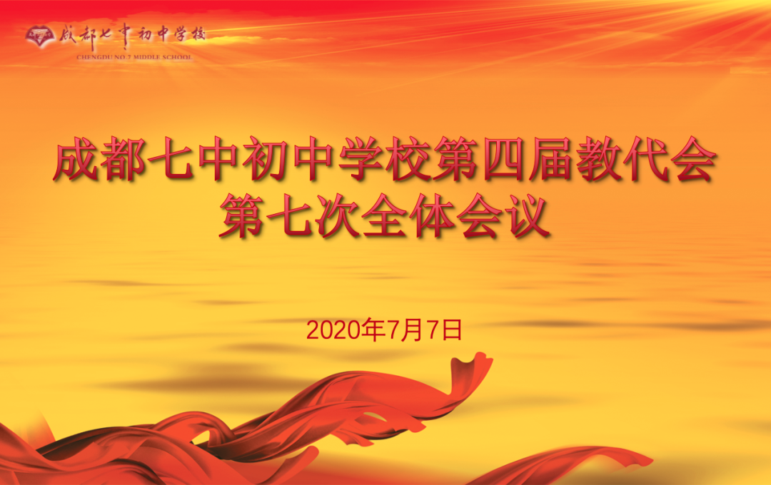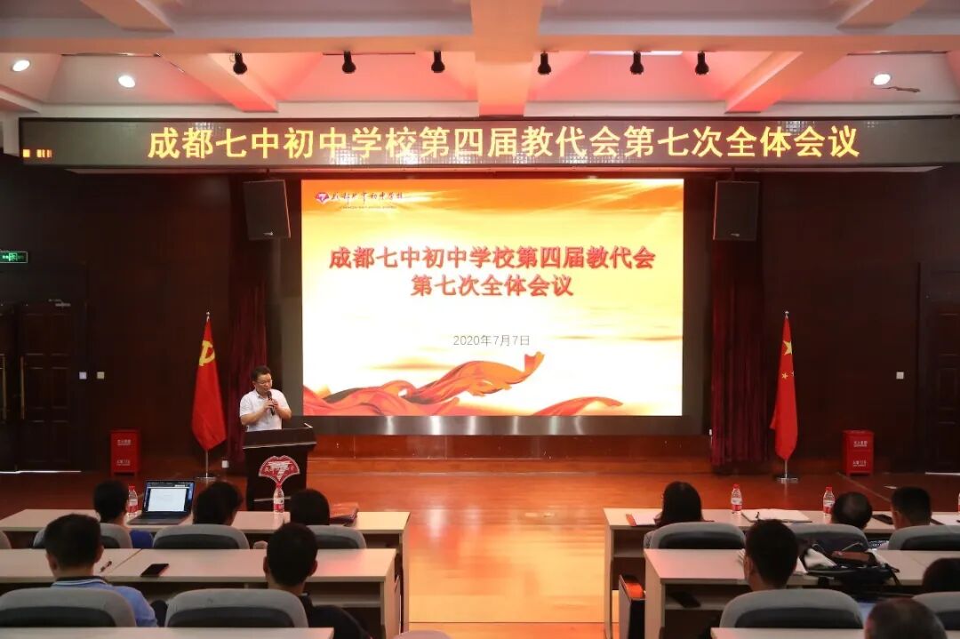 2020年7月7日,成都七中初中学校第四届教代会第七次全体会议在本部校区学术厅隆重举行。来自两校区的56位正式代表和4位列席代表参加了本次会议。