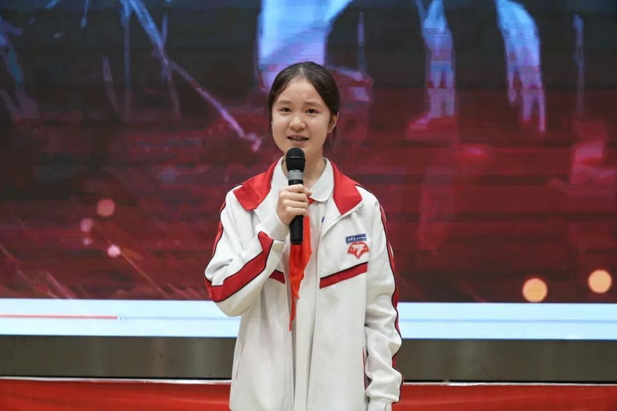 2027届1班胡弈辰同学以“怀敬畏之心,赴时代之约”为主题,激励同学们将“强国有我”的信念化作课堂专注、运动场拼搏等实际行动。