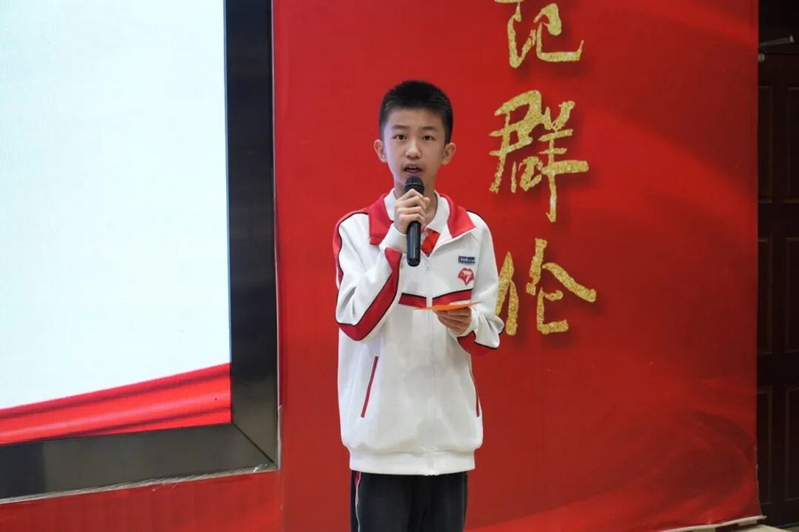 2027届6班的倪梓轩同学的演讲深情回顾了民族的苦难与抗争,并从中提炼出走向辉煌、迈向复兴的精神密码和磅礴力量。