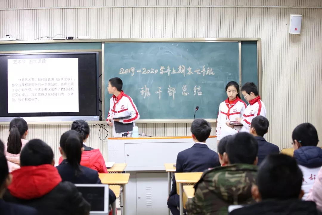 2020届十个班的班主任以及各班班干部在年级组⻓曹登勇老师的组织下,进行了期末班委总结。年级分管领导石敏副校长以及学生成长中心副主任何鑫老师、张力生老师出席会议。在总结大会上,每个班的班干部都总结了在这学期中,自己班上的特色、不足,以及未来规划。总体来讲,全年级同学在这学期中,学习的积极性都有提高,但主要缺点在于清洁、锻炼等方面。各班的班级总结都精彩纷呈,别出心裁。