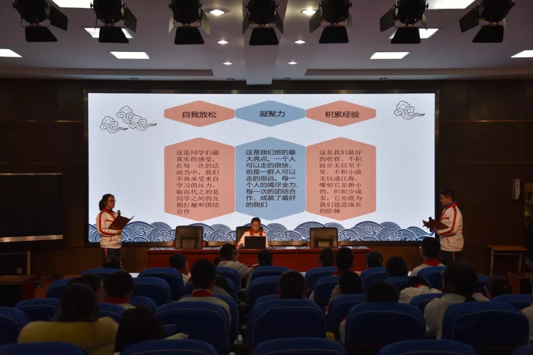 邱兴华副校长肯定了大家所做的工作,并提出两个问题“为什么选择你们这几位同学代表班级做总结?你们在班主任心目中的分量如何?”邱校长指导大家如何用同龄人最能接受的方式来帮助同学,教育同学。年级组长何明老师进行总结并提出了四点建议:第一,向课件风格统一、制作精美的班级学习;第二,讲话的时候要姿态大方,声音洪亮; 第三,总结的内容每个班级各有不同,要学会互相学习,取长补短; 第四,大家要养成倾听的好习惯。